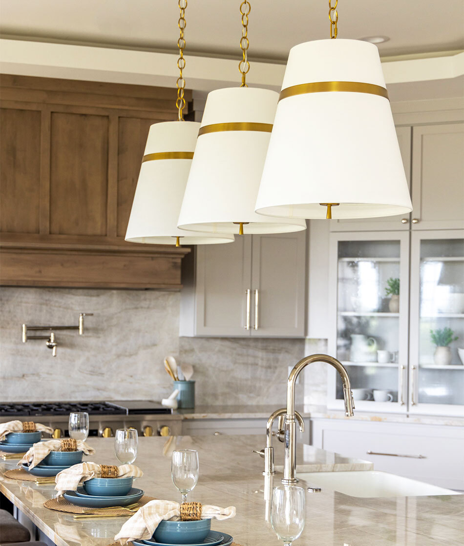 Today’s kitchens are furnished like living room spaces, warm, inviting. It’s how we spend our family time, it’s where everyone gathers when we throw a party, it’s where we like to be on weekend mornings. Working with customers, builders, interior designers we are seeing the trends come to life: more color, more texture in wood, stone, tile, and hardware. And the lighting? It pulls your personal style into the kitchen. It glows over the island. It sparkles in the eyes of family and friends. It makes you feel at home.